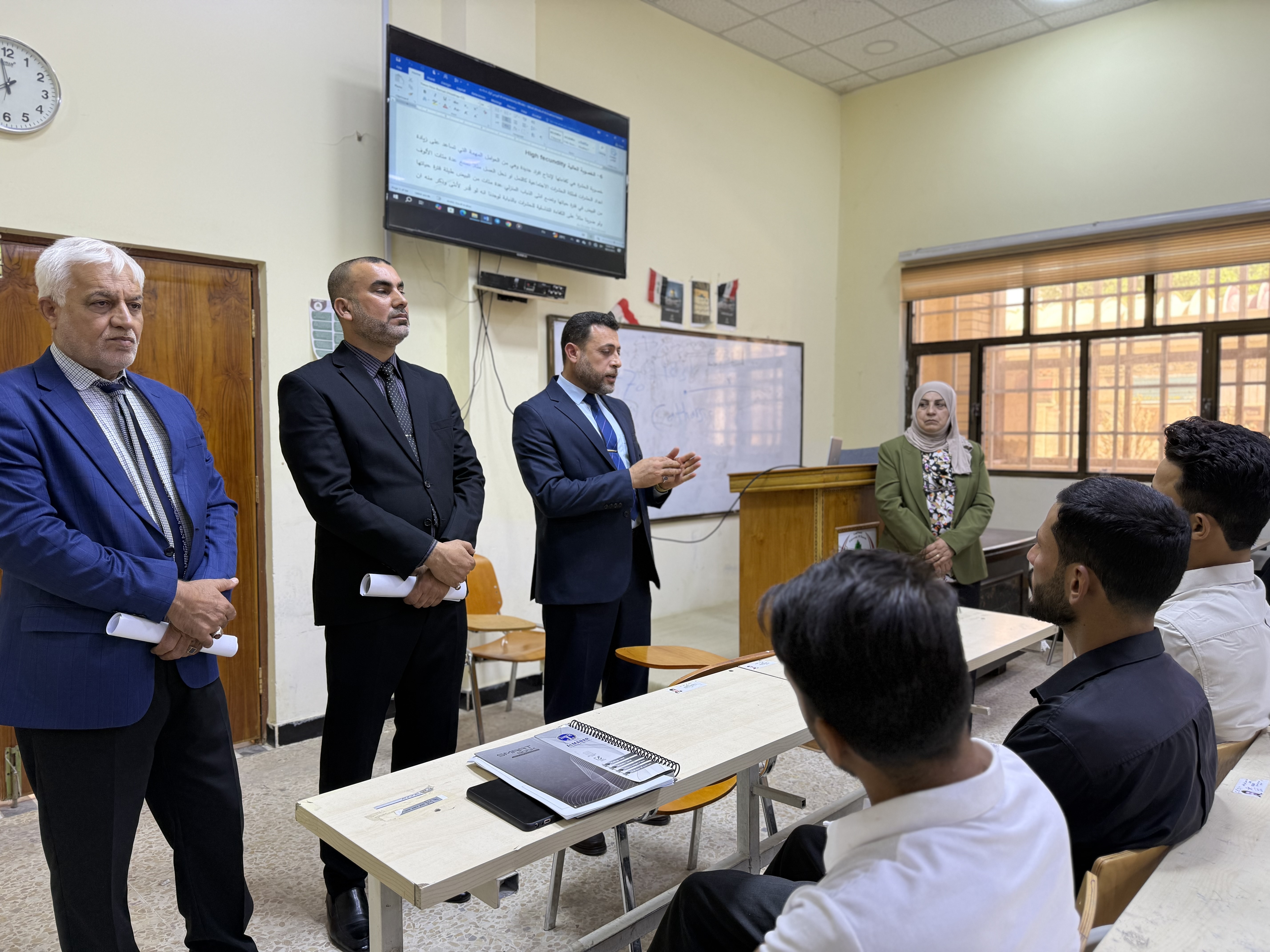 The meeting was chaired by the Dean of the College, Professor Dr. Ali Darb Shaaban, and in the presence of the Assistant Dean for Scientific Affairs, Dr. Hadi Khalaf Rasan, and the Assistant Dean for Student Affairs, Dr. Sajjad Abdul Ghani Abdullah.