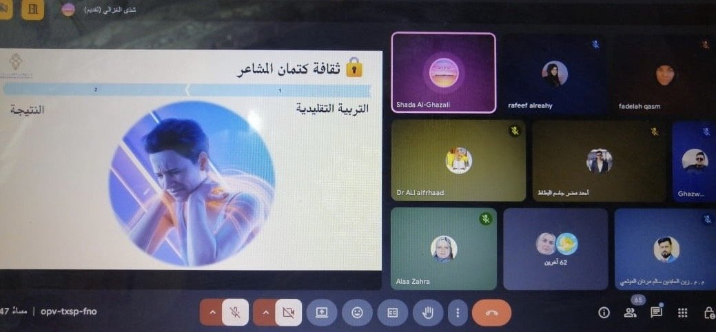 The workshop was presented by Dr. Shatha Mohammed Al-Ghazali from Shatha Al-Hayat Foundation – UAE, and Asst. Lecturer Zain Al-Abidin Salem Mardan from the College of Education Al-Qurnah. Asst. Prof. Dr. Fadila Qasim Al-Ali from the same college managed the session and introduced the lecturers.