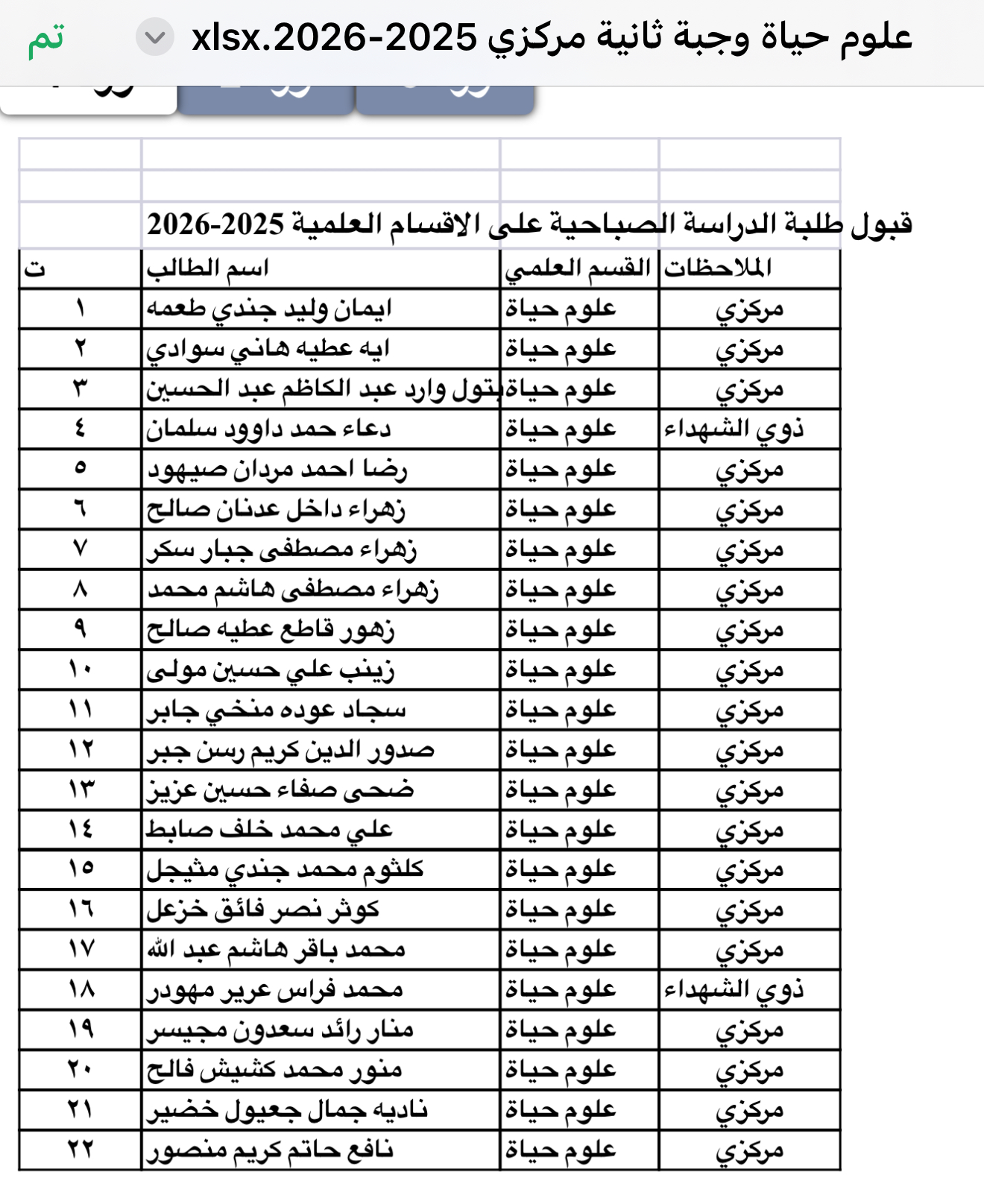 Announcement of Admission to the Department of Life Sciences - Second Batch (Central Admission)