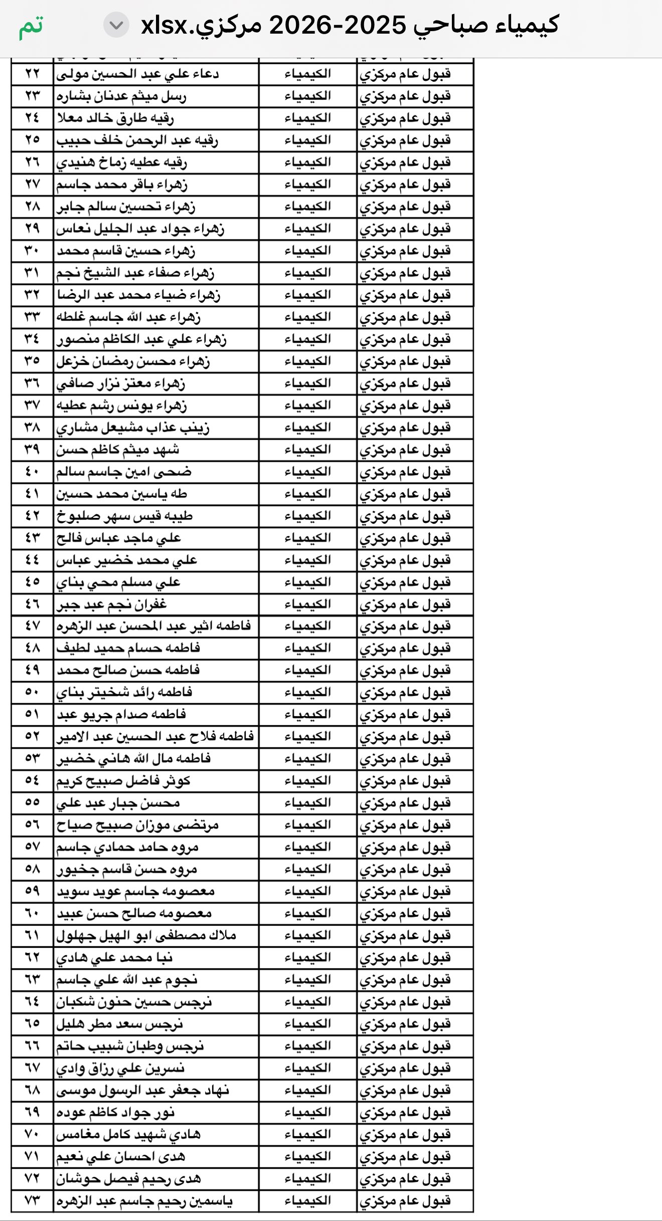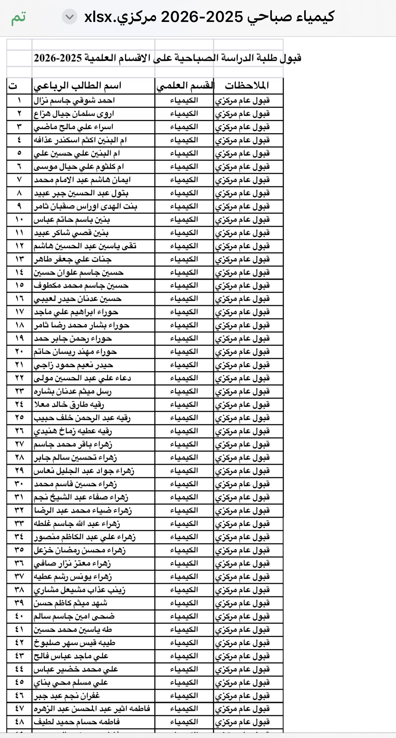 Announcement of Admissions for the Department of Chemistry - Central Admission