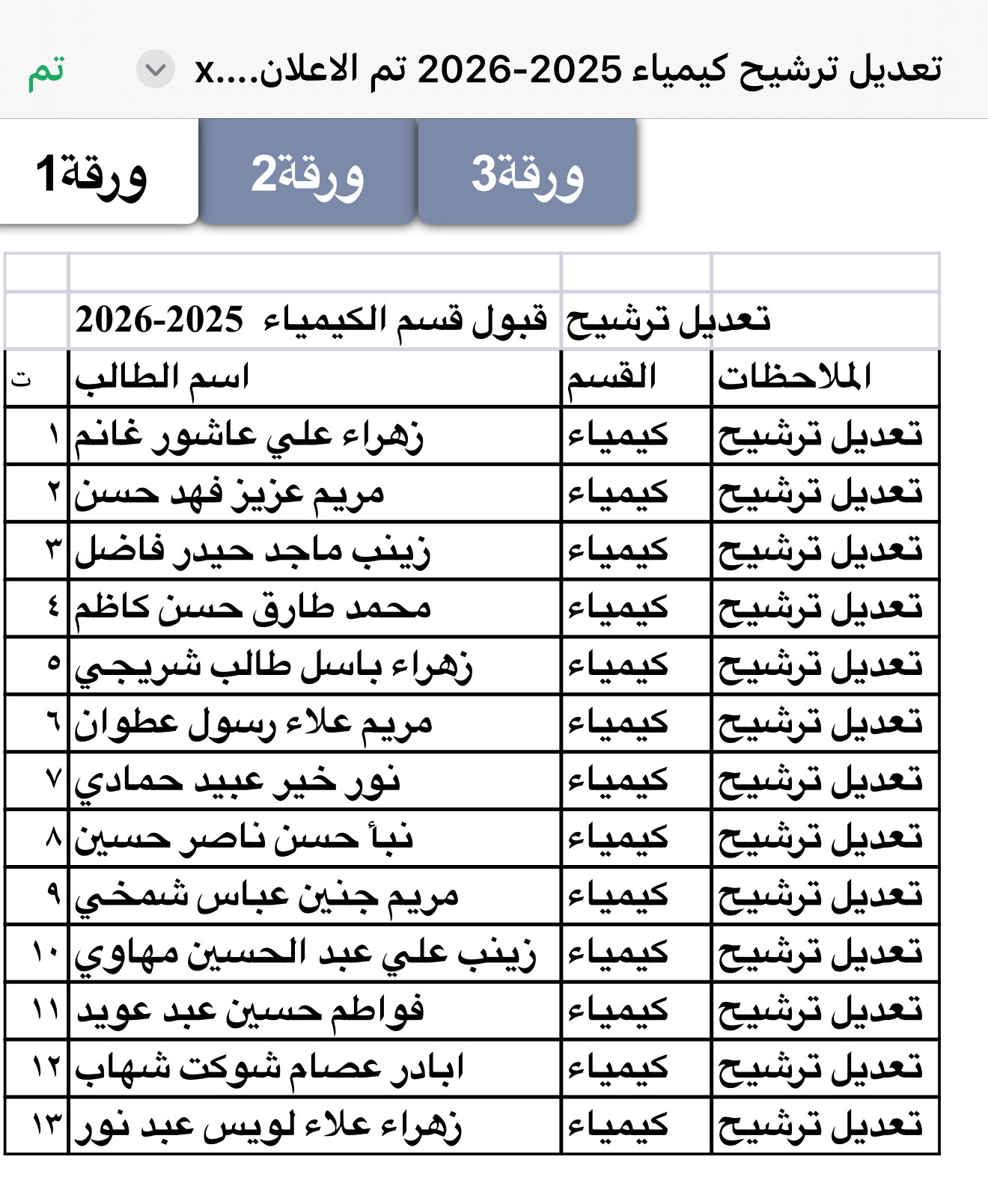 Acceptance of Nomination Change (Transfer) for the Chemistry Department