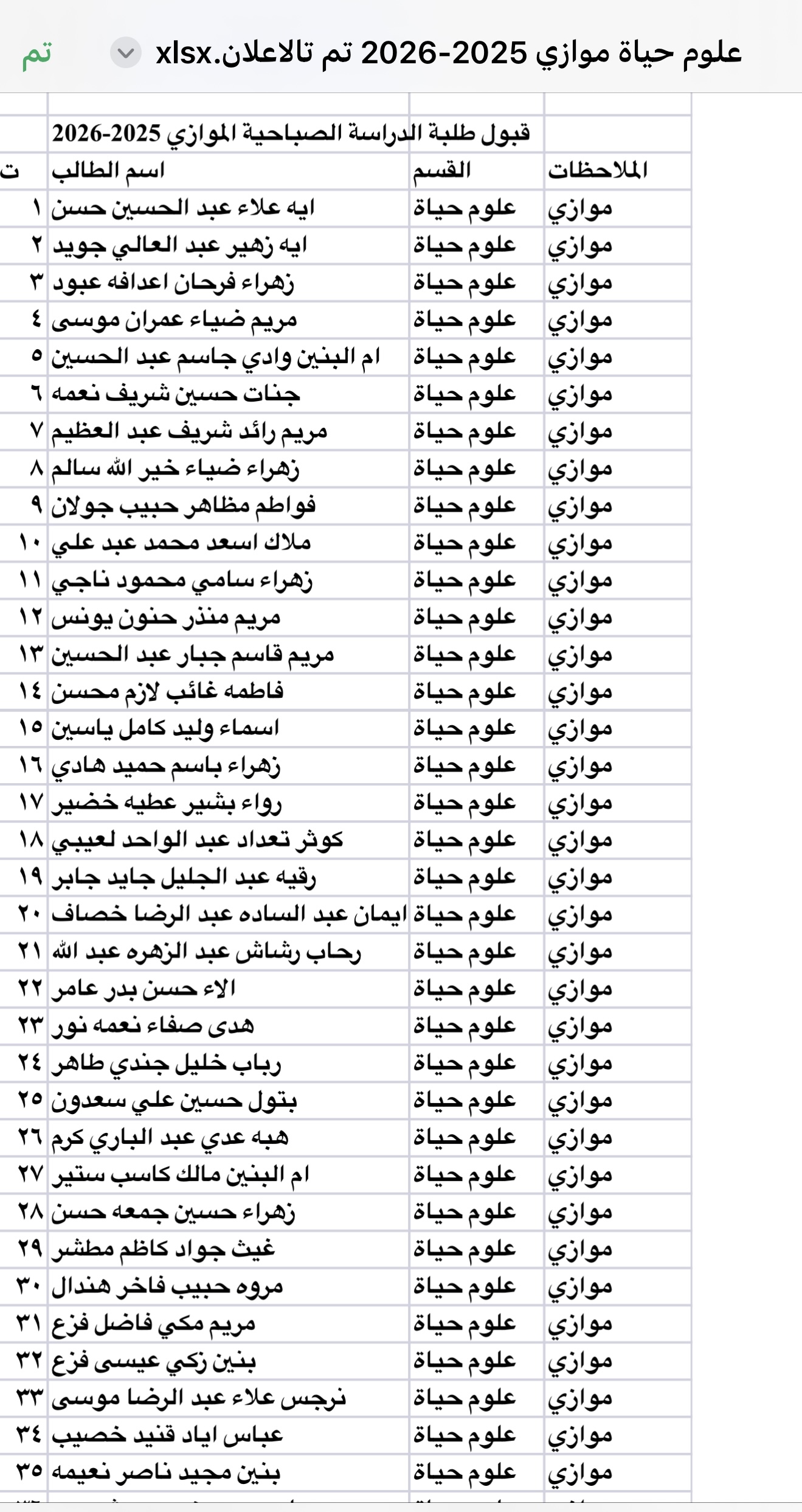 Acceptance of Parallel Morning Study Students for the Department of Life Sciences for the Academic Year 2025/2026