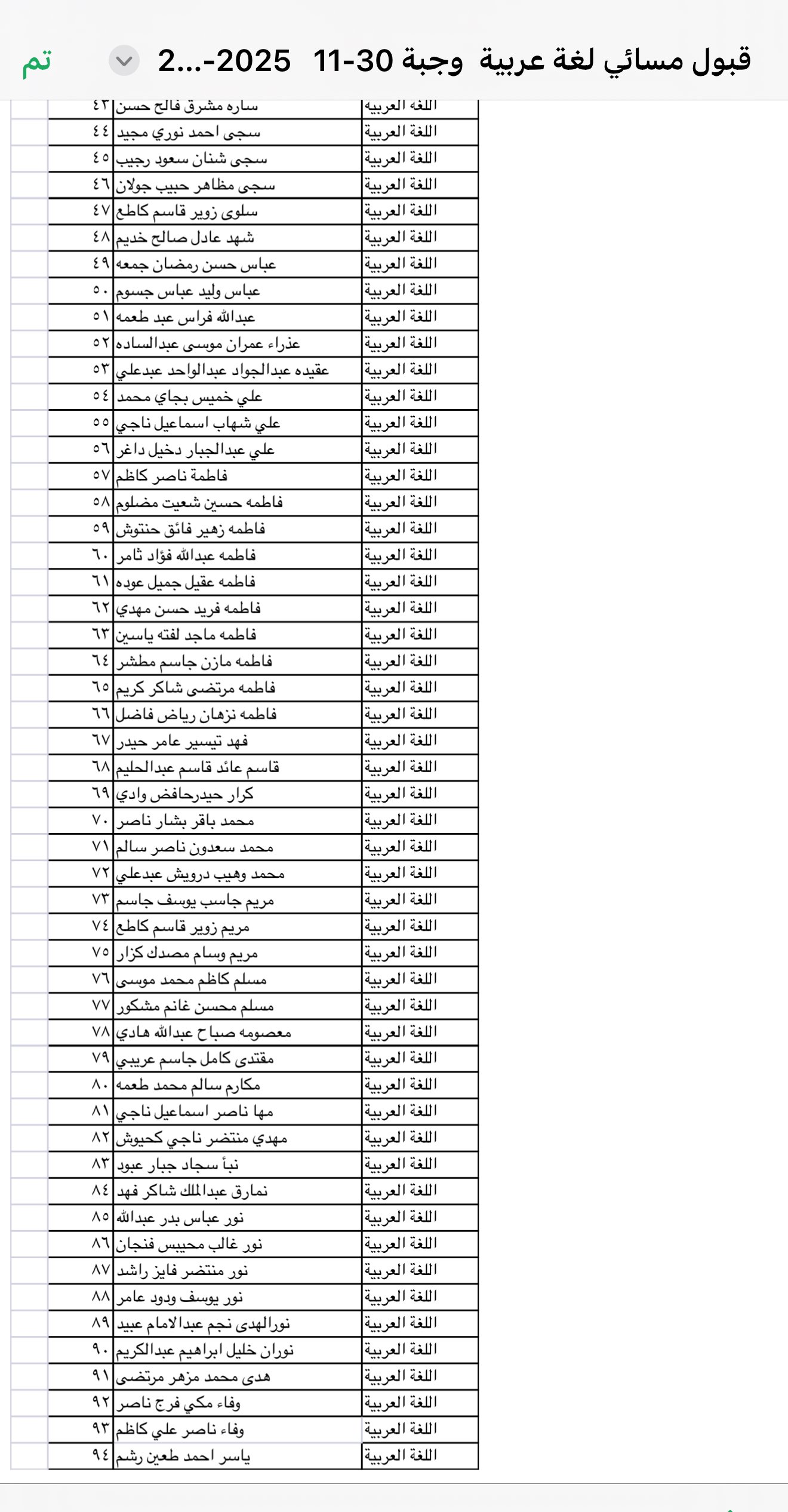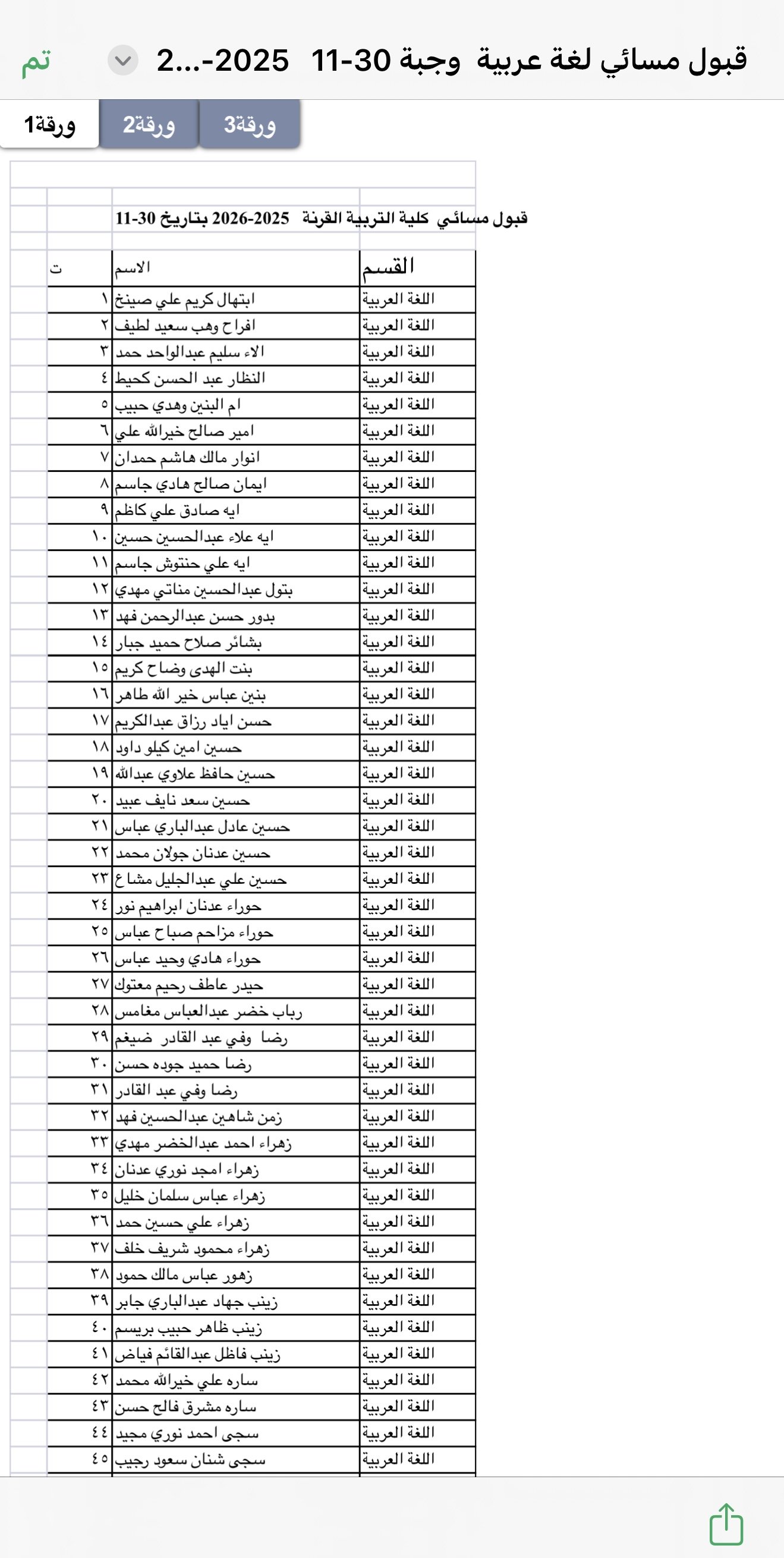 Admission Announcement: Department of Arabic Language - Evening Studies for the Academic Year 2025-2026