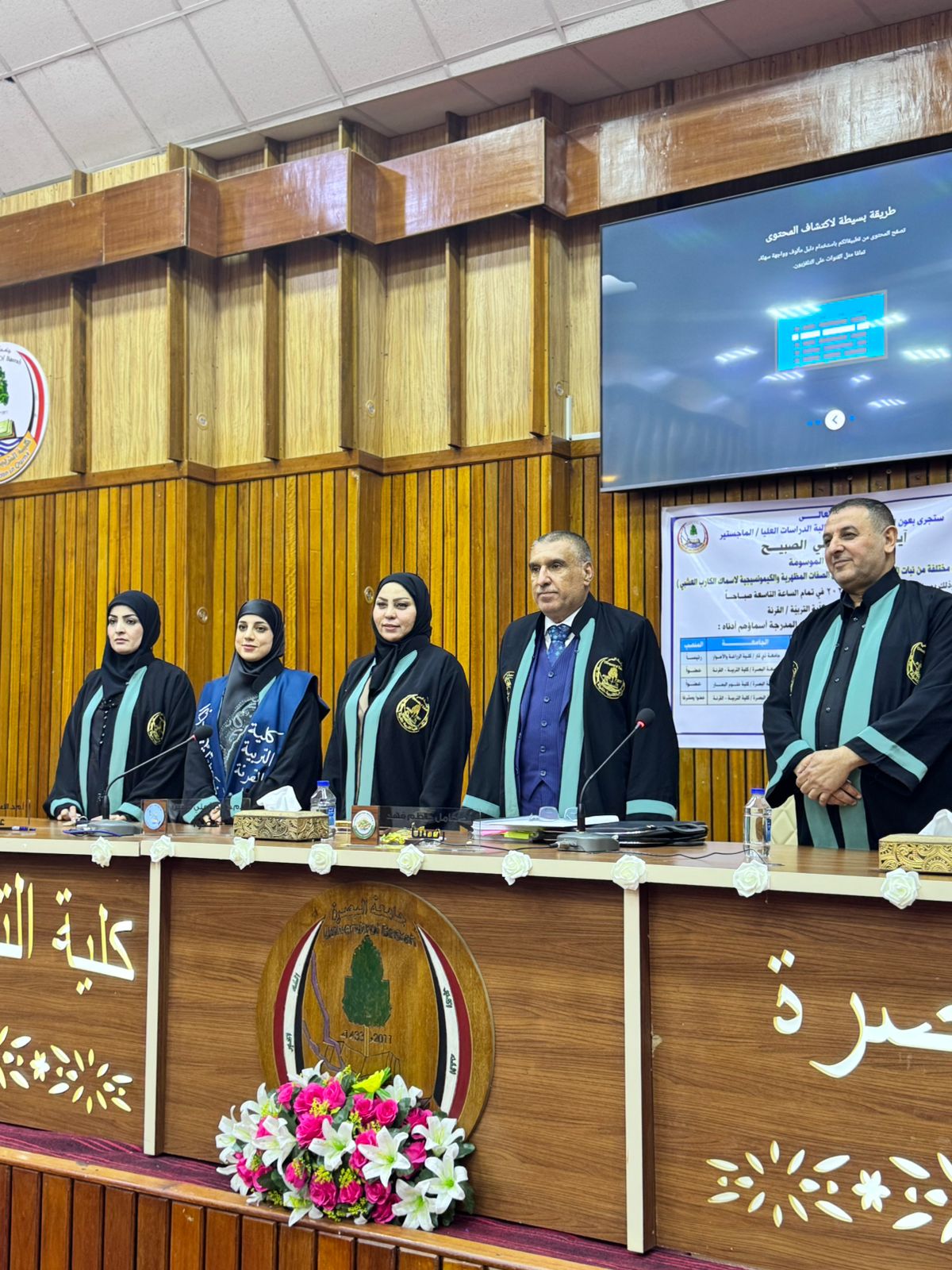 The College of Education – Al-Qurna at the University of Basrah discussed a Master's thesis in the Department of Biology by student Aya Sabah Al-Subeih titled The Effect of Substituting Different Proportions of Azolla in Diets on Some Morphological and Histochemical Characteristics of Grass Carp. The study aimed to determine the impact of plant substitution on various growth parameters such as total weight gain, relative growth rate, daily growth rate, specific growth rate, and food conversion ratio.