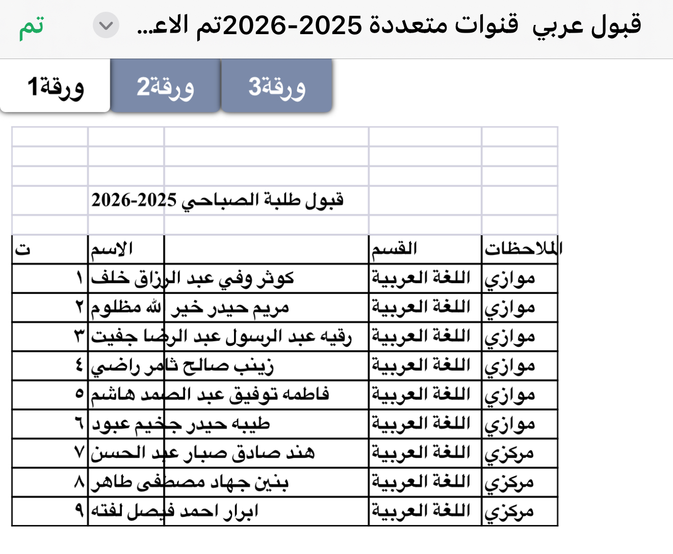 Acceptance of Arabic Language Department Students (Multiple Channels) for the Academic Year 2025/2026